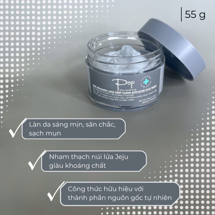 🍀 Mặt nạ đất sét tro núi lửa Jeju POP chứa các hạt tro núi lửa giàu khoáng chất kết hợp hoàn hảo với than hoạt tính tự nhiên và các dưỡng chất thảo dược có công dụng làm sạch sâu, lấy đi các tế bào chết trên da, loại bỏ bã nhờn và bụi bẩn, thu nhỏ lỗ chân lông đồng thời nuôi dưỡng làn da, giúp da bạn khoẻ mạnh, không còn mụn và bã nhờn.